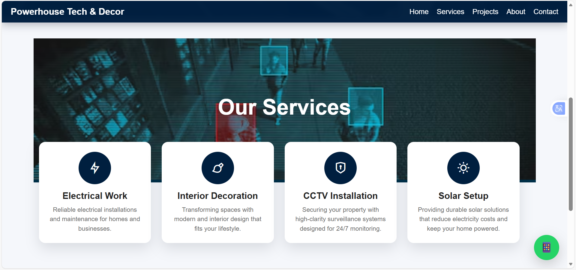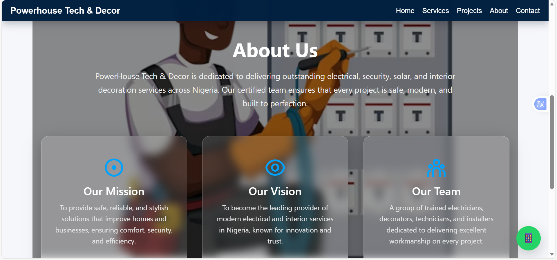 A corporate business website designed and developed for a Nigerian services company focused on electrical, security, solar, and interior solutions, delivering a professional and credible online presence.